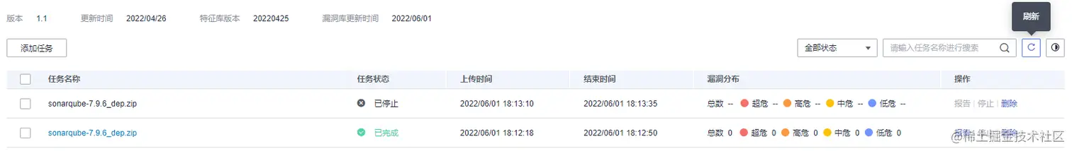 3. 单击“添加任务”,在弹出的对话框中,单击“添加文件”选择本地的软件包(见文末附件),导入扫描对象,点击“确定”开始任务扫描,页面跳转至任务列表。