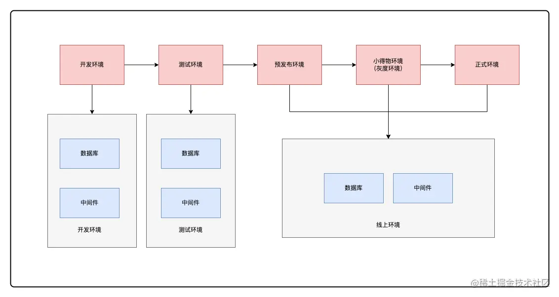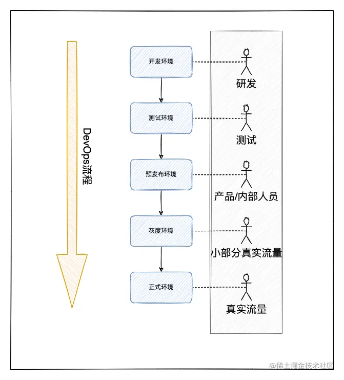 在快速迭代的互联网环境中,特别是在微服务体系中,服务从测试到线上正式环境的环境差异性较大,直接上线会造成多类风险耦合在一起的复杂型风险,所以很多公司采用了 开发环境 → 测试环境 → 预发布环境 → 灰度环境 → 正式环境的一套流程,主要目的是通过对环境的隔离来剥离耦合型风险,使不同种类型的风险分别在不同的环境暴露出来并加以解决。