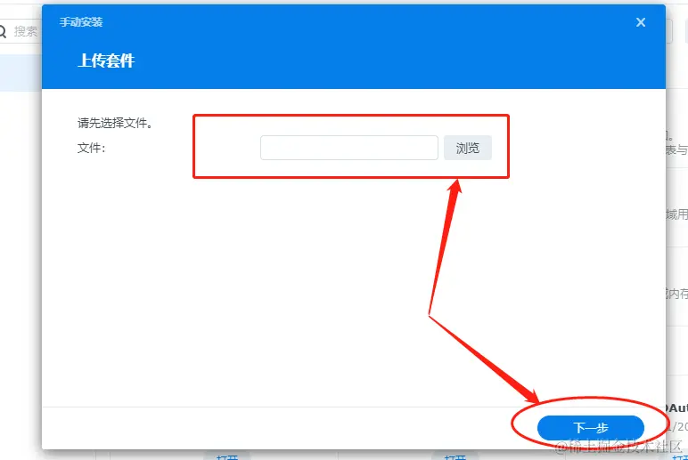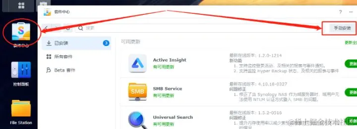 接着,在群晖系统的“套件中心”里,选择“手动安装”,并在弹出的文件选择页面,找到cpolar套件存放位置,点击“下一步”进行安装。在安装开始前,群晖系统会弹出询问提示,我们可不必管他,选择“同意”安装。