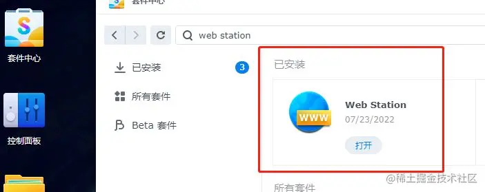 同样的步骤,我们再搜索并安装web station套件。