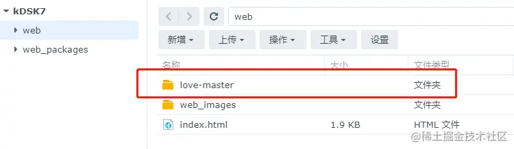接着在本地计算机将其解压。解压后,可以直接将网页文件夹拖动到群晖系统中,此时我们可以先将其存放在web文件夹下
