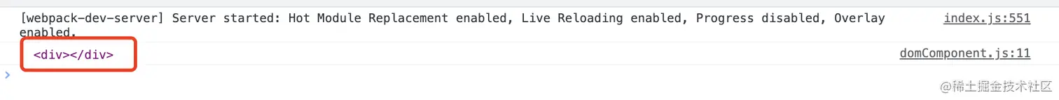 可以看到控制台上已经输出了我们创建好的DOM节点。
