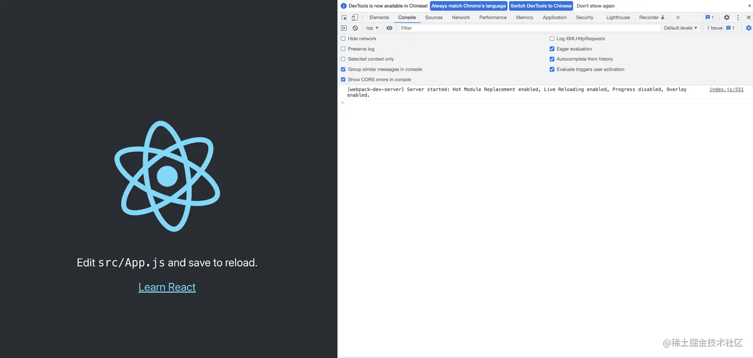 跑起来后,将index.js替换如下(要去掉webpack的ModuleScopePlugin插件,否则会报错):