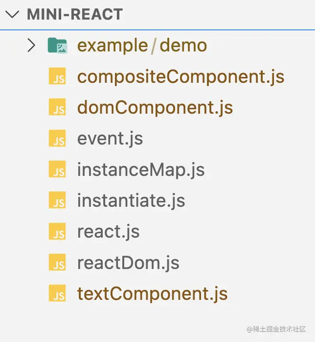 根据我们之前对React挂载机制的分析,首先需要实现的是相应控制类,在这里我们可以简化一下,实现两个控制类就好: