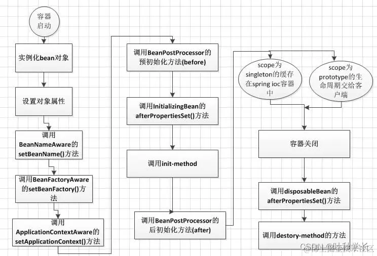 Spring上下文中的Bean生命周期也类似,如下:
