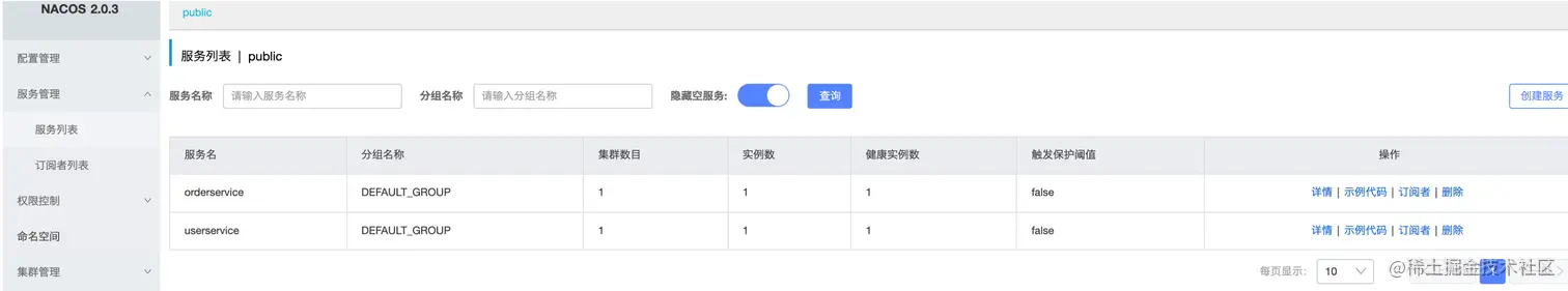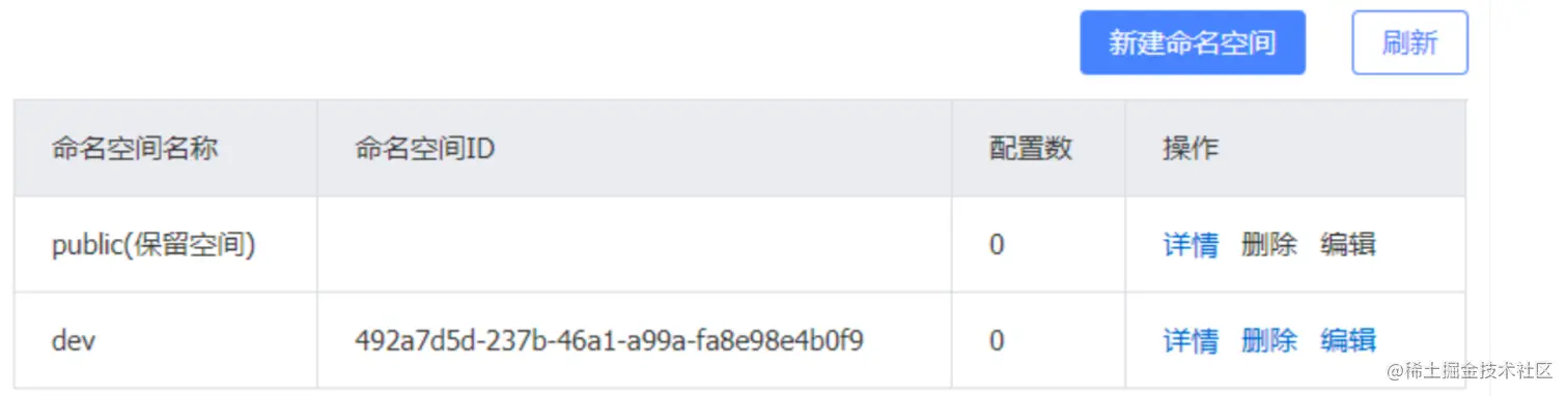 1)在Nacos控制台可以创建namespace,用来隔离不同环境
