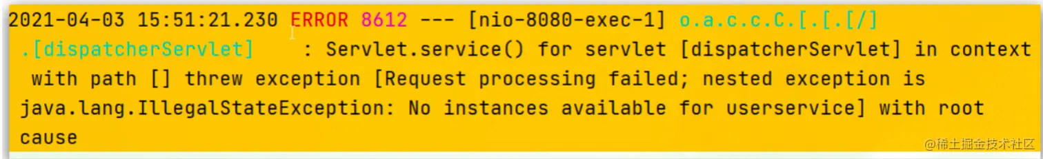 6)此时访问order-service,因为namespace不同,会导致找不到userservice,控制台会报错: