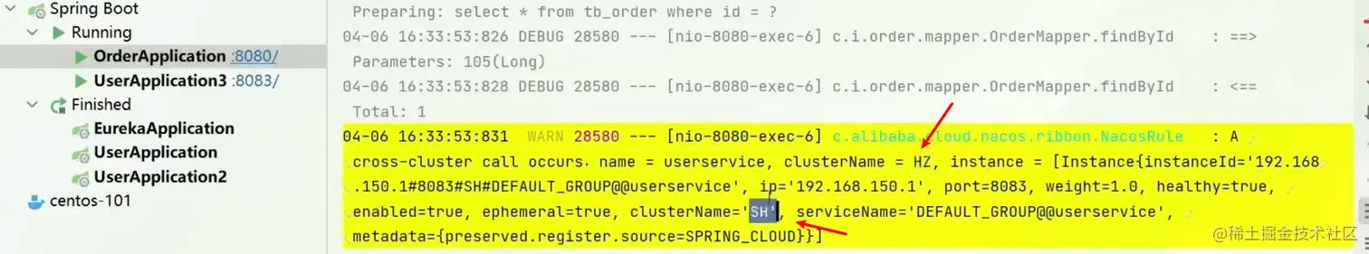 在Nacos控制台可以看到集群变化:(我们修改user-service集群属性配置,达到下面的效果)