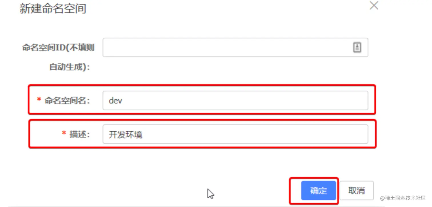 namespace: 4d6ce343-9e1b-44df-a90f-2cf2b6b3d177 # dev环境 命名空间,填ID