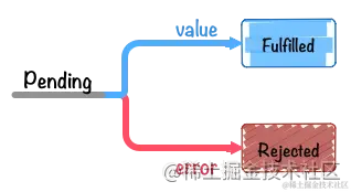 1.Promise本质上是一个状态机,只有三种:Pending(等待态),Fulfilled(执行态),Rejected(拒绝态),且状态变化是单向不可逆的