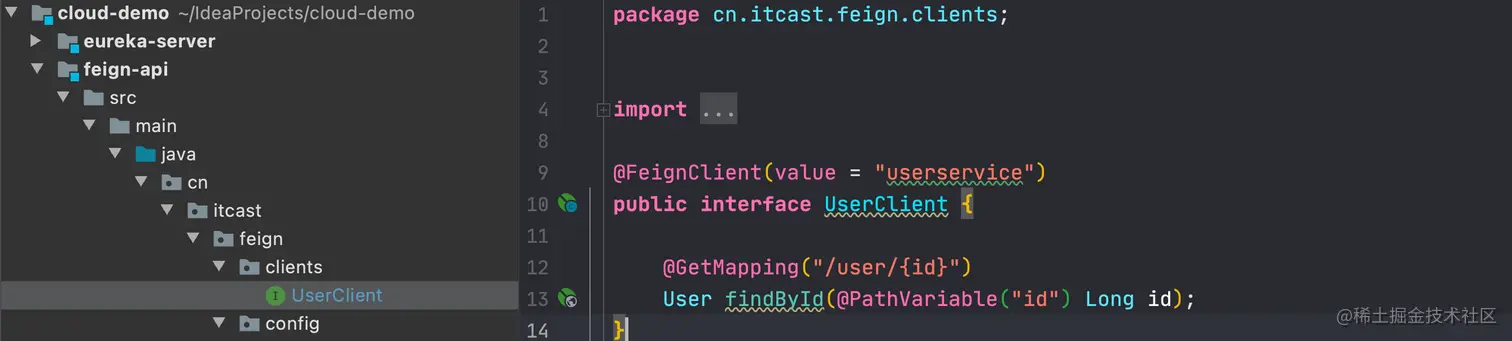 (2)将order-service中编写的UserClient、User、DefaultFeignConfiguration都复制到feign-api项目中