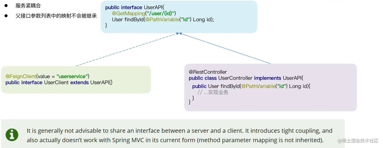 给消费者的FeignClient和提供者的controller定义统一的父接口作为标准。
