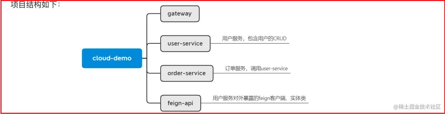 要使用Sentinel肯定要结合微服务,这里我们使用SpringCloud实用篇中的cloud-demo工程。没有的小伙伴可以在课前资料中找到: