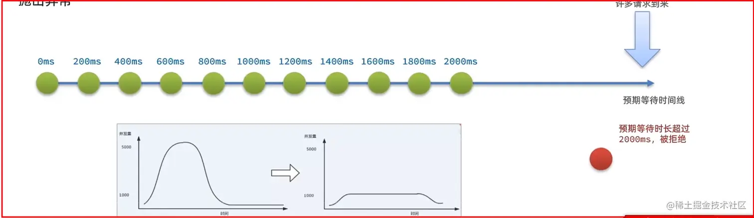 例如:QPS = 5,意味着每200ms处理一个队列中的请求;timeout = 2000,意味着预期等待超过2000ms的请求会被拒绝并抛出异常