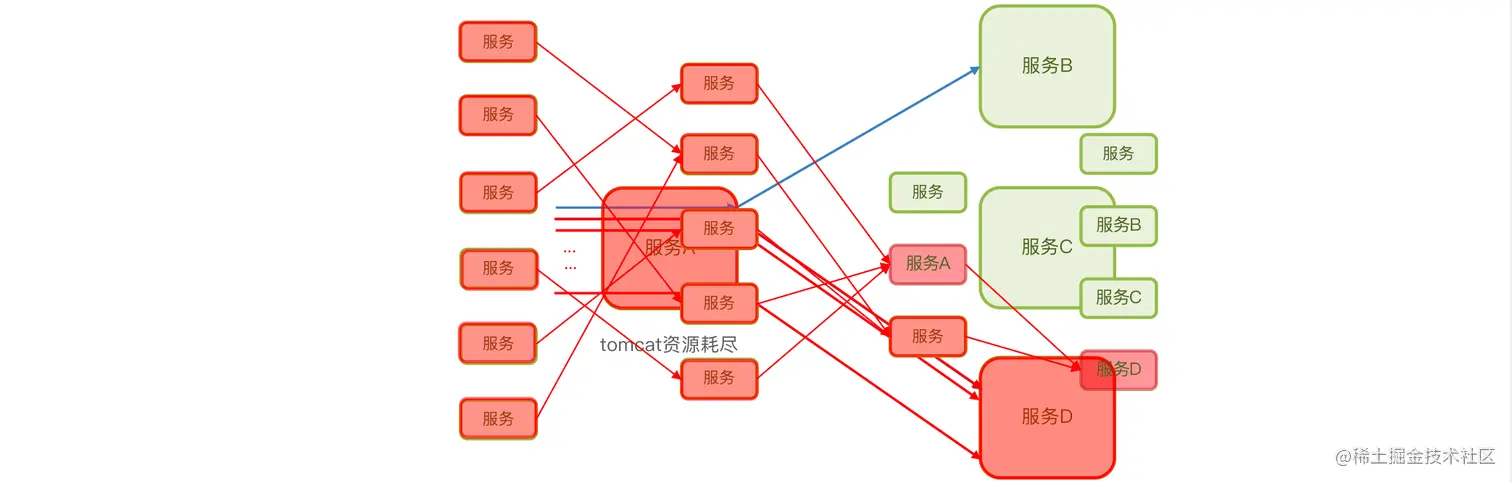 微服务之间相互调用,因为调用链中的一个服务故障,引起整个链路都无法访问的情况。