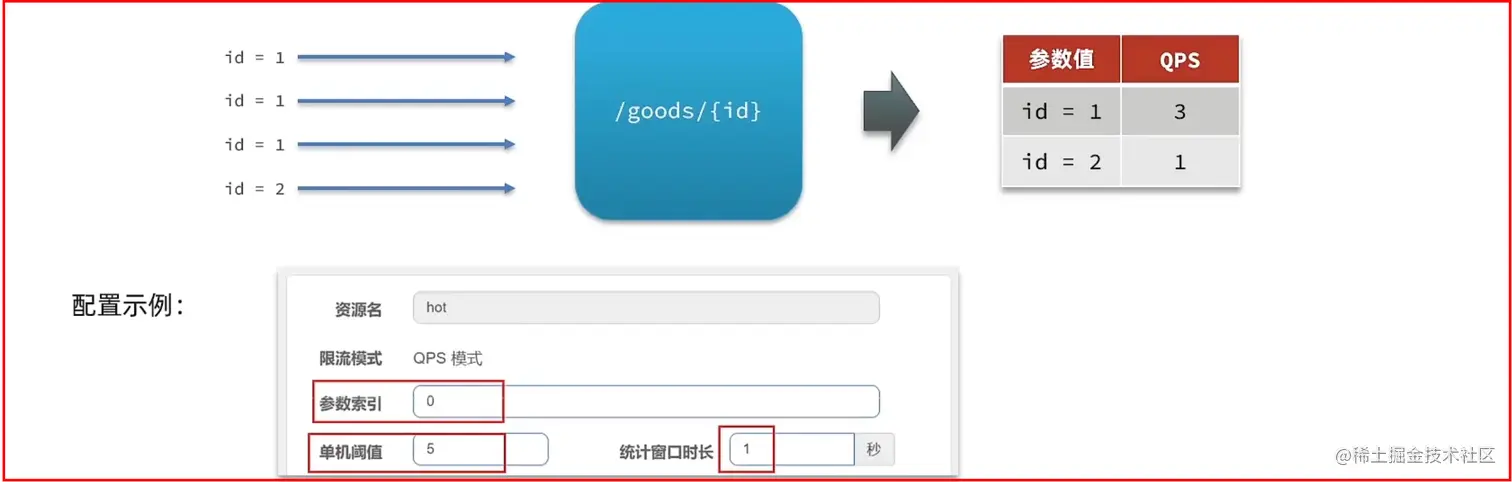 之前的限流是统计访问某个资源的所有请求,判断是否超过QPS阈值。而热点参数限流是分别统计参数值相同的请求,判断是否超过QPS阈值。