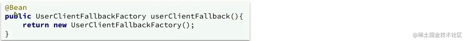 步骤二:在feing-api项目中的DefaultFeignConfiguration类中将UserClientFallbackFactory注册为一个Bean: