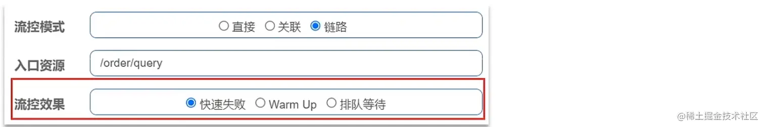 链路模式:只针对从指定链路访问到本资源的请求做统计,判断是否超过阈值。