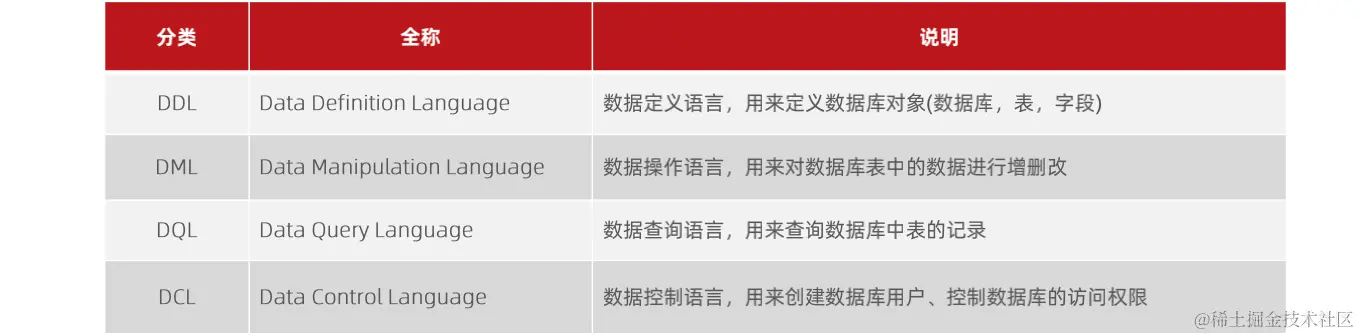 // 这类SQL开发人员操作的比较少,主要是DBA( Database Administrator 数据库管理员)使用。
