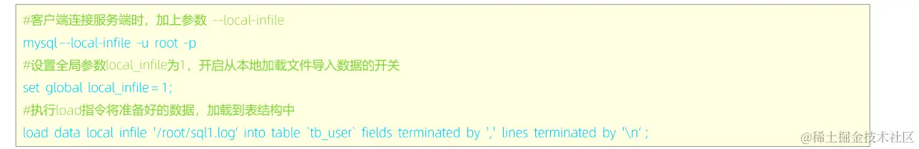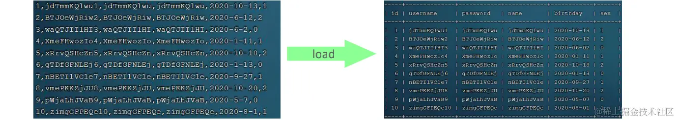 使用load指令将100w数据加载进表结构当中,16s。使用insert的话,需要十多分钟。