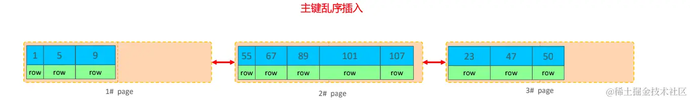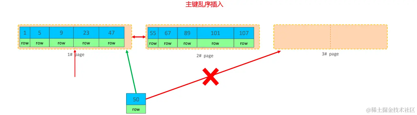 主键乱序插入可能出现页分裂的情况。