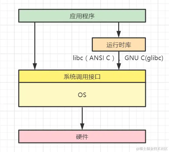 举一个简单的C语言的小例子,printf(''); 是操作硬件打印字符,由于只有OS才能操作硬件,所以这个函数调用,一定调用了系统调用的接口,由于系统调用的接口约定较为复杂,且每个OS都不一样,而C语言需要可移植性,所以推理得出 有个东西包装了系统调用过程,提供统一接口,给应用程序使用,那么其就会调用GLIBC 的函数库函数。