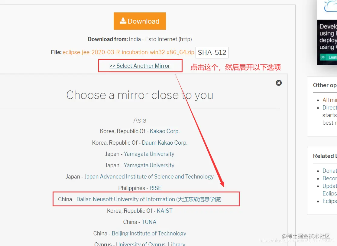 (4)点击“Select Another Mirror” ******展开选择china(中国)