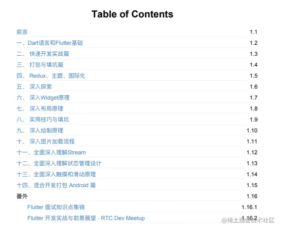《Flutter完整开发实战详解手册》组织结构 这份手册采用由浅入深的方式介绍Flutter技术原理,分为 14 章,总计 193 页,整理目录如下: