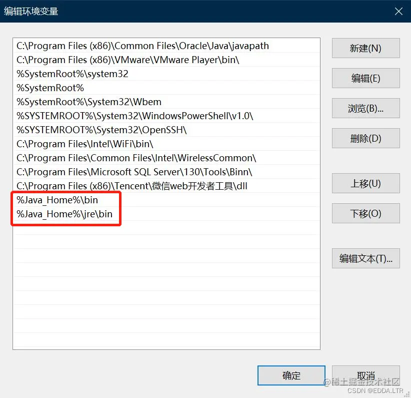 进行 Path 配置。选择 Path ,点击编辑。新建两个变量。