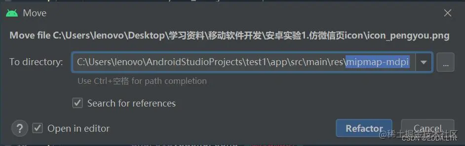 点击 Refactor 。图片文件被保存进项目文件夹。
