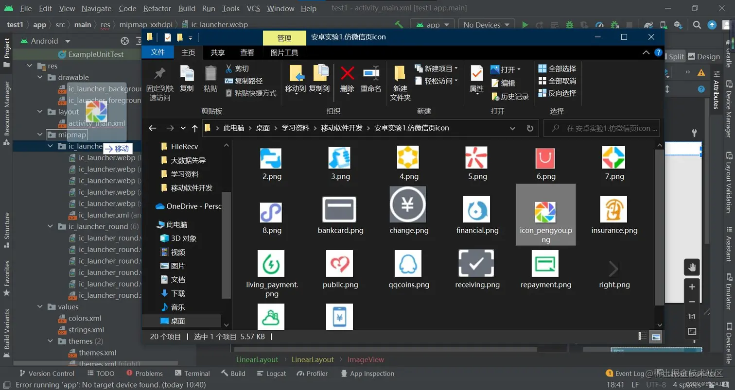 将图片素材拖入 mipmap 文件夹。注意_文件命名须为英文小写开头_。