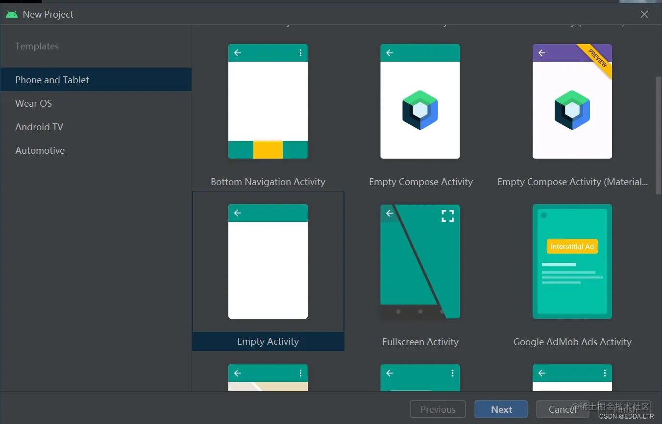 选择 Empty Activity 。