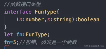 (n:number,s:string):boolean //且函数的参数必须是固定的类型,返回值也是