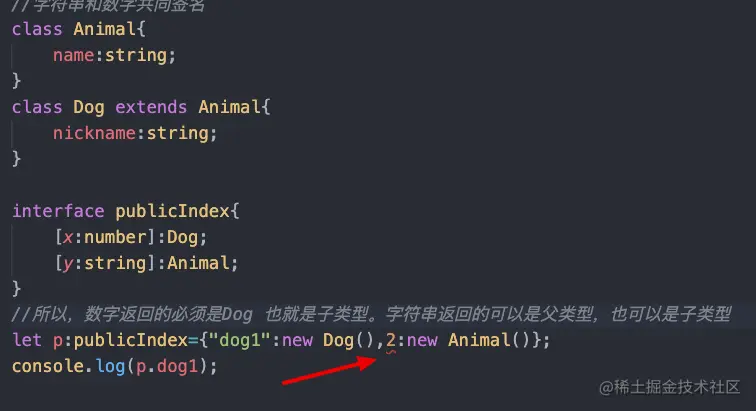 索引签名还支持字符串签名。其实签名方式就只有两种,一个是number,一个是string。