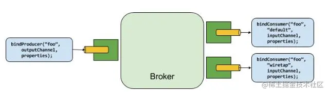 MessageChannel组件是Spring MessageMessageChannel(用于输出)及其扩展SubsrcibableChannel(用于输入)。支持使用相同机制的其他可绑定的组件。类似的示例是 Spring Cloud Stream Kafka绑定中支持的KStream,KStream被用作输入、输出可绑定的组件。