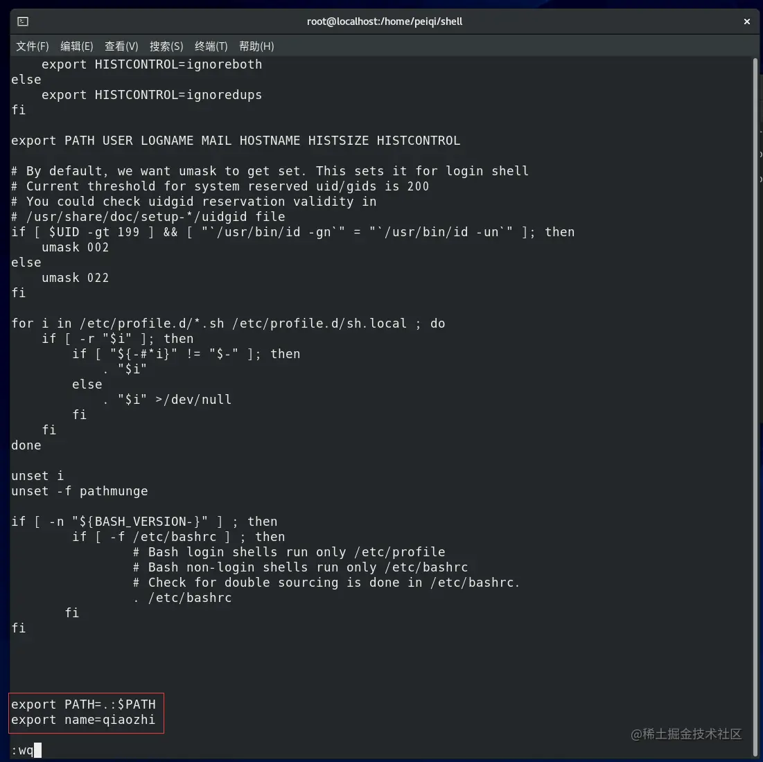 由于开始shell进程时,默认已经打开etc/profile/文件,上述更改是进程打开后的更改,未重新加载文件