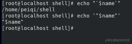 ``:反引号是执行并引用命令的执行结果echo `$name'