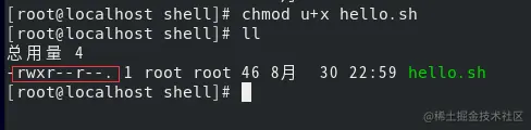 拥有执行权限后,我们可以直接使用命令简写来执行脚本