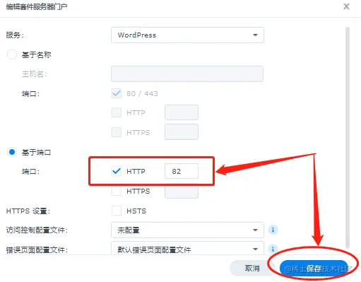 在选择创建WordPress虚拟主机后,就会出现熟悉的设置页面,我们只要输入对应信息。这里需要注意,无论是选择“基于名称”还是“基于端口”,我们都尽量选HTTP项,并为其指定对应的网页输出端口,否则会导致无法显示正确的WordPress网页(cpolar可以设置针对公共互联网访客的https选项,为web station的https选项针对的是内网访客)。