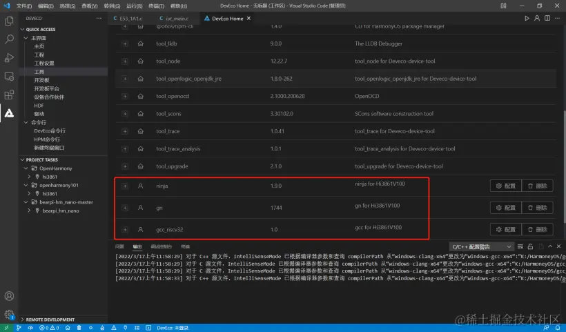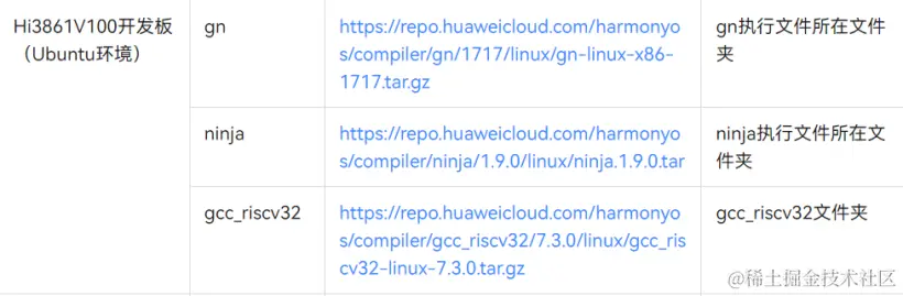 第二步,安装编译工具链,Hi3861V100开发板Ubuntu环境工具链下载链接gn、ninja、gcc_riscv32。