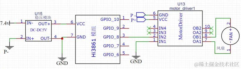 手上的风扇的驱动电路如下图,PWM控制风速: