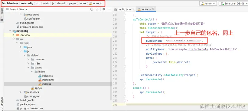 第四步,回到上一节DevEco Studio 打开的工程,修改三个地方,具体路径如下: