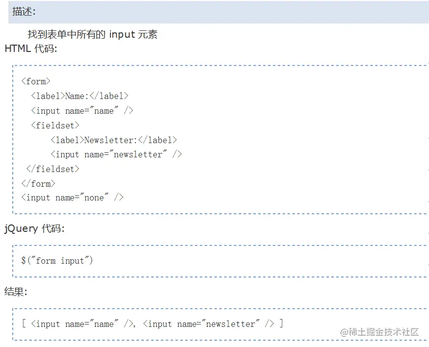 这个实例是找到所有form标签下的input子元素(子子孙孙)