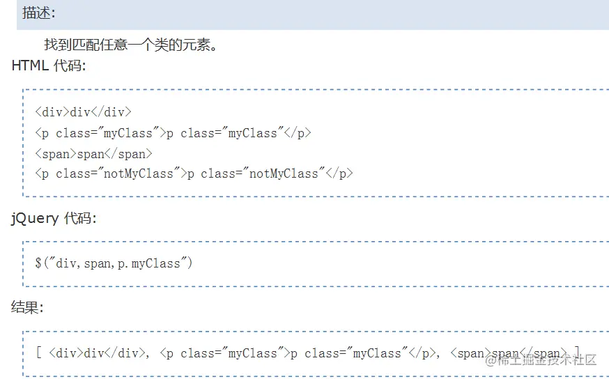 上图所出现的“p.myClass”意思是找到标签名是“p”的并且class属性是“myClass”的标签