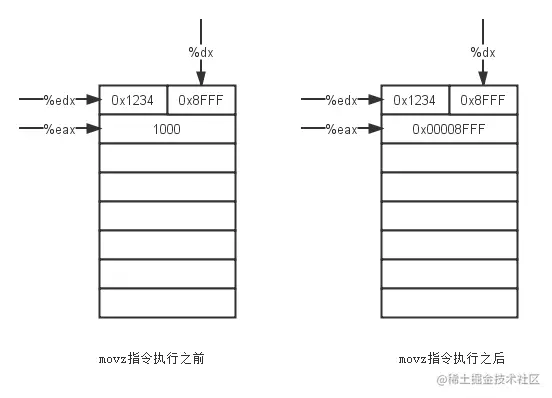 比如对于指令movzwl %dx %eax来讲,它的作用如下图所示。