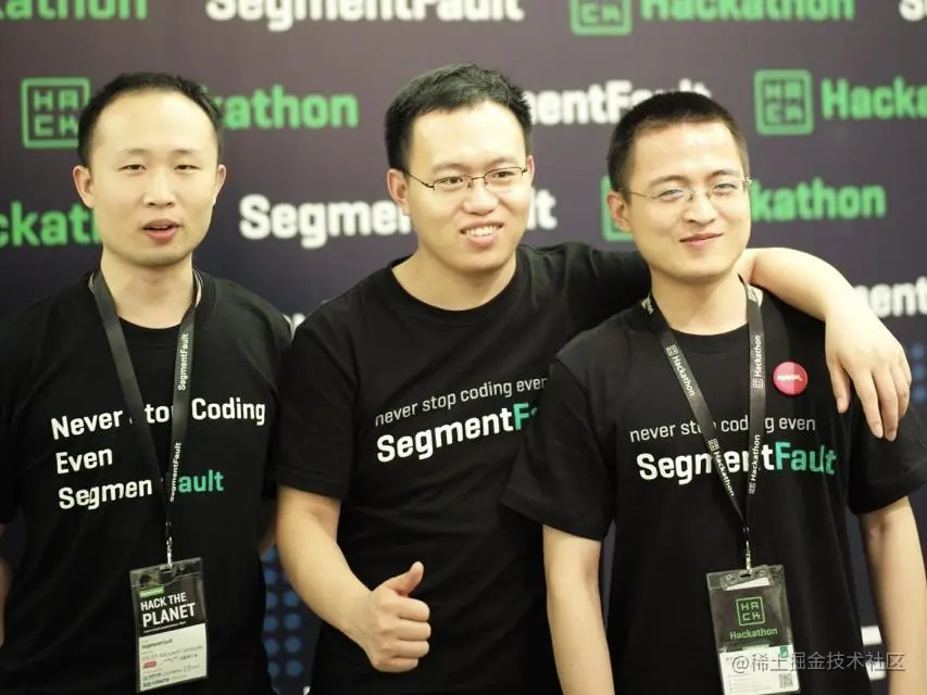 图:SegmentFault 思否创始团队在 SegmentFault Hackathon,从左至右分别为:SegmentFault 思否 CTO 祁宁,CEO 高阳,产品设计合伙人董锋
