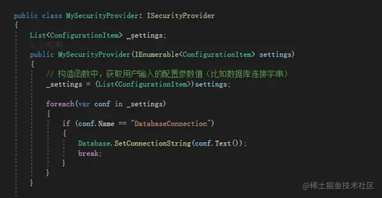 这些用户配置项将出现在Wyn的管理画面中,允许系统管理员进行设置。典型的配置项是用户信息数据库的连接字串。通过提供这种配置项目,可以避免在安全提供程序中硬编码用户信息数据库连接字串的问题。 public Task CreateAsync(IEnumerable settings) // 本安全提供程序的实例创建方法。 这个方法的内容几乎是固定的,如: