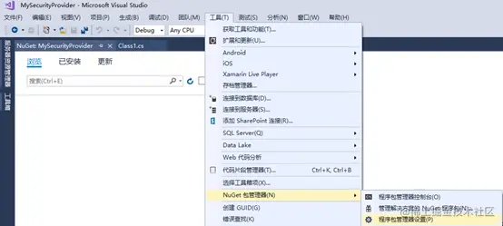 逐个选中程序包,点击“安装”,即可添加本项目对这两个程序包的依赖。 (3) 实现接口 自定义安全提供程序需要实现两个接口:ISecurityProviderFactory和ISecurityProvider。 实现第一个接口的操作步骤: 添加一个新的类文件,如MySecurityProviderFactory.cs,以实现ISecurityProviderFactory接口。 public class MySecurityProviderFactory: ISecurityProviderFactory 该接口规定了两个属性和一个方法: