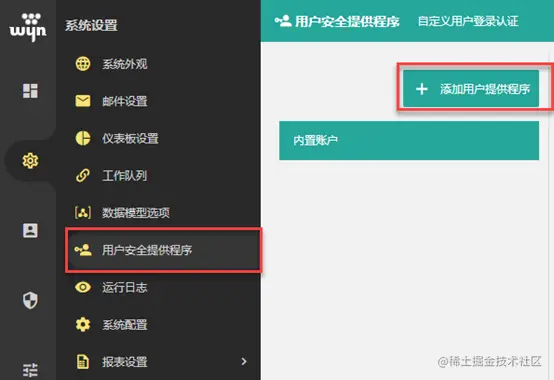 (3) 添加用户安全提供程序 以管理员身份登录到系统的后台管理网站,单击“+添加用户提供程序”。
