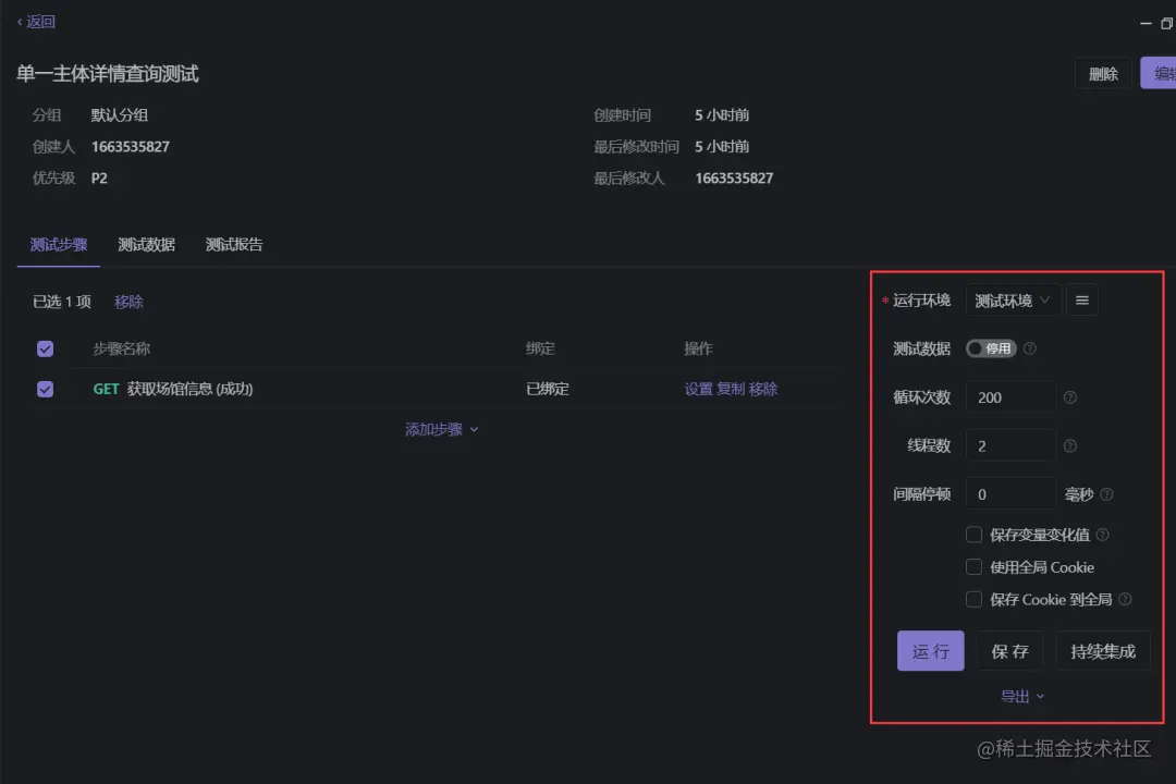 导入测试的接口之后呢,右侧可以选择测试的频次,也支持压力测试。